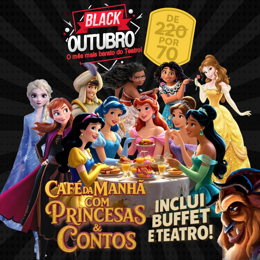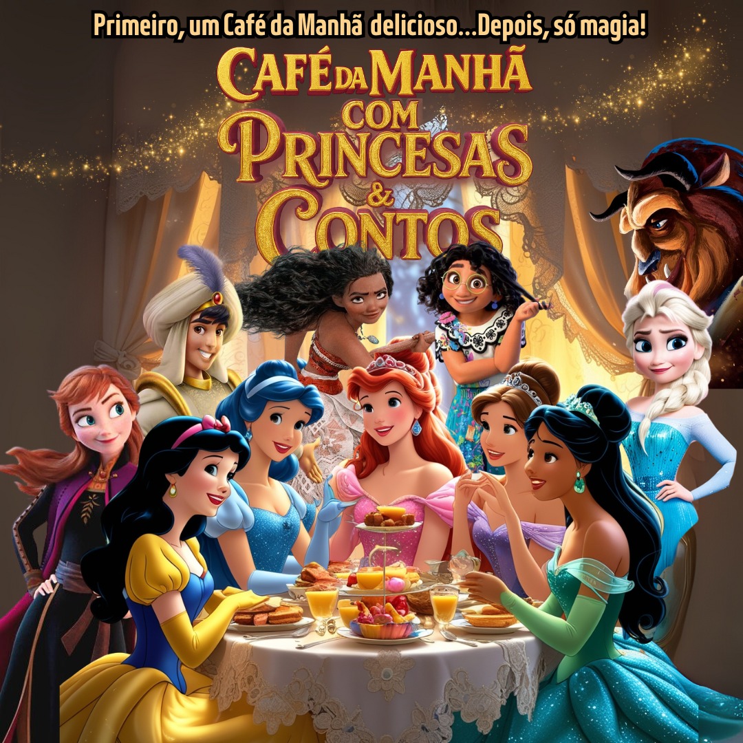No Café da Manhã com Princesas e Contos, histórias como Bela e a Fera, Moana e Elsa ganham vida com músicas, figurinos e muita emoção.